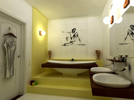 Обдумывая будущий дизайн интерьера ванной комнаты, не забудьте и об ее функциональном предназначении. В этом помещении должно удобно располагаться большое количество предметов, таких как ванна или душевая кабина, сантехническое оборудование, мебель. Необходимо очень внимательно подойти к их выбору, так как повышенный уровень влажности и температуры в ванной комнате предъявляет особые требования к используемым там предметам.