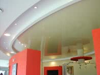 Для комнат используют, преимущественным образом, светлые матовые оттенки. Тонкости глянцевого потолка (лаковых пленок) увеличивают пространство, а также высоту. Они используются для помещений с низкими потолками. Отлично выглядит глянцевый потолок в гостиной комнате.