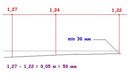 Допустим, что минимальное значение будет равно 1,22 м., а максимальное — 1, 27 м. В этом случае перепад высот составит 0,05 м, или 5 см.